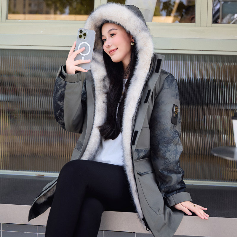 时尚 户外派克服保暖加厚中长款 情侣外套 骆驼1930派克羽绒服
