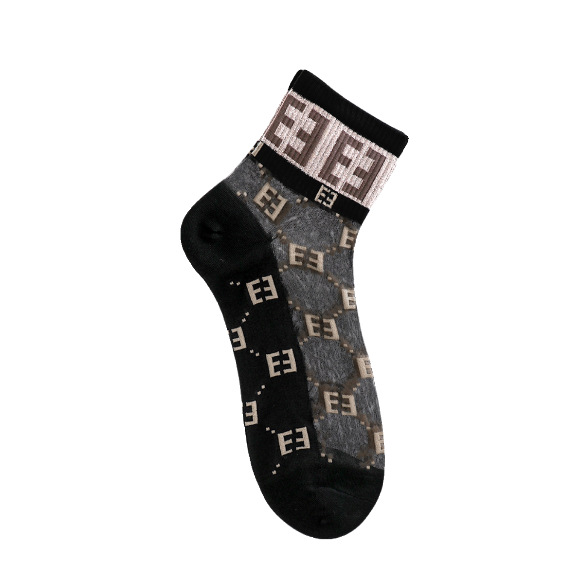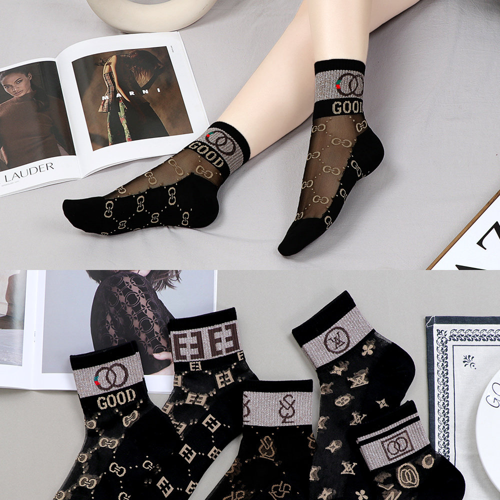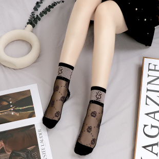 棉底水晶玻璃丝袜女短网红ins潮牌欧美字母薄款 透明金银丝中筒袜
