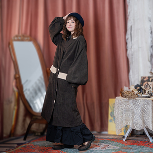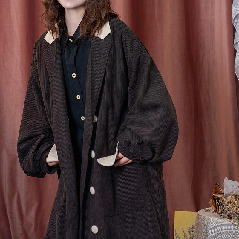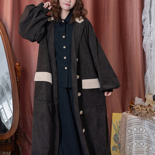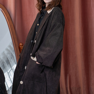 风衣男秋 复古灯芯绒克苏鲁文职大衣宽松外套中长款 马登工装 美式