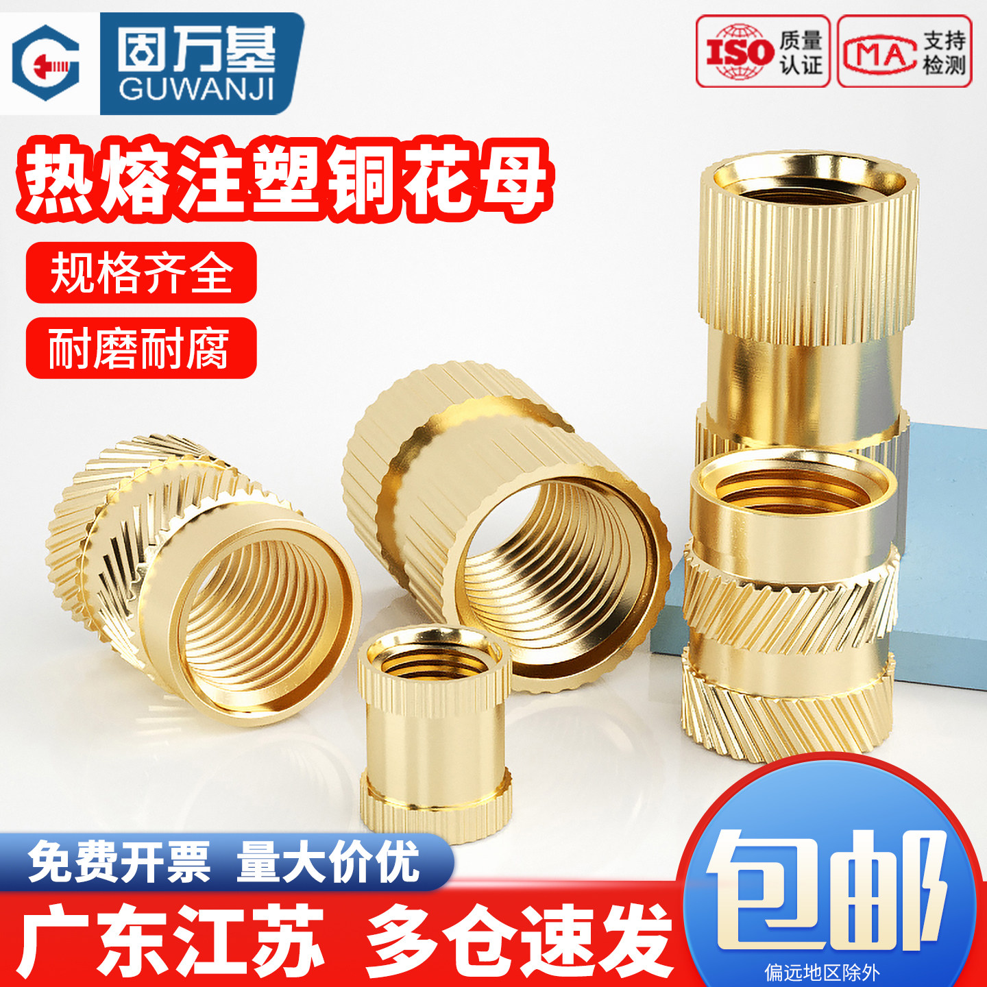 铜牙套M2注塑铜螺母M2.5铜镶件预埋件M3双通锁紧防松M4滚花M5M6M8