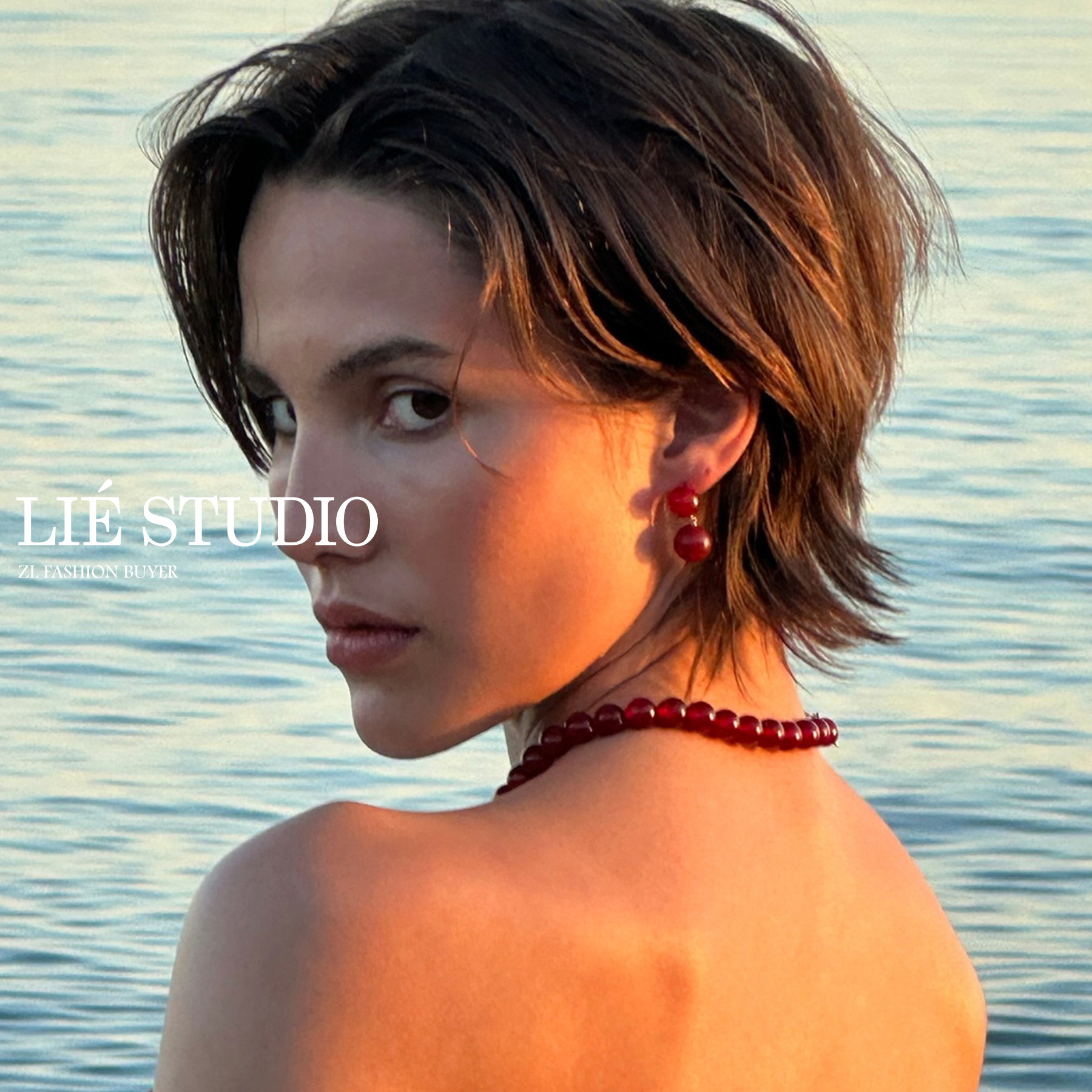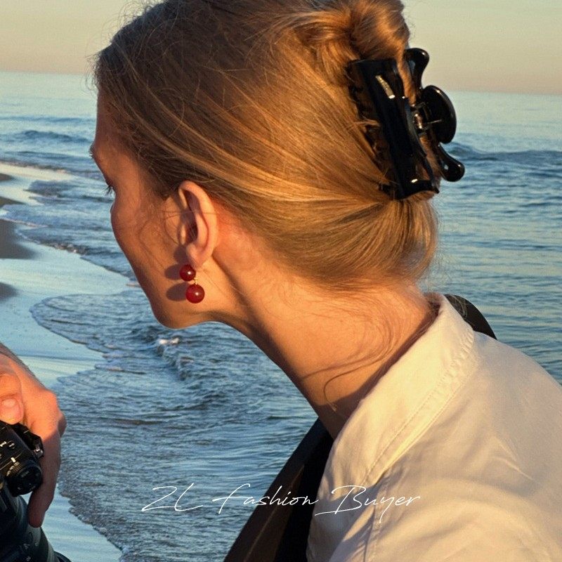 925银针秋冬酒红色植绒方形镶钻耳钉轻奢高级感耳环气质新年耳饰