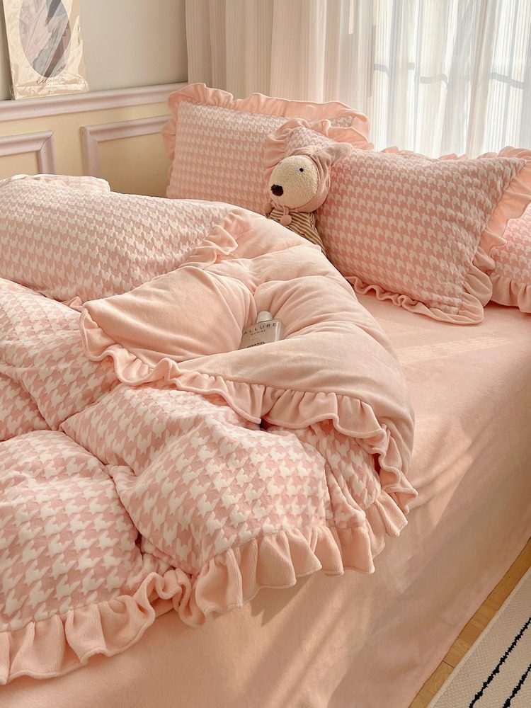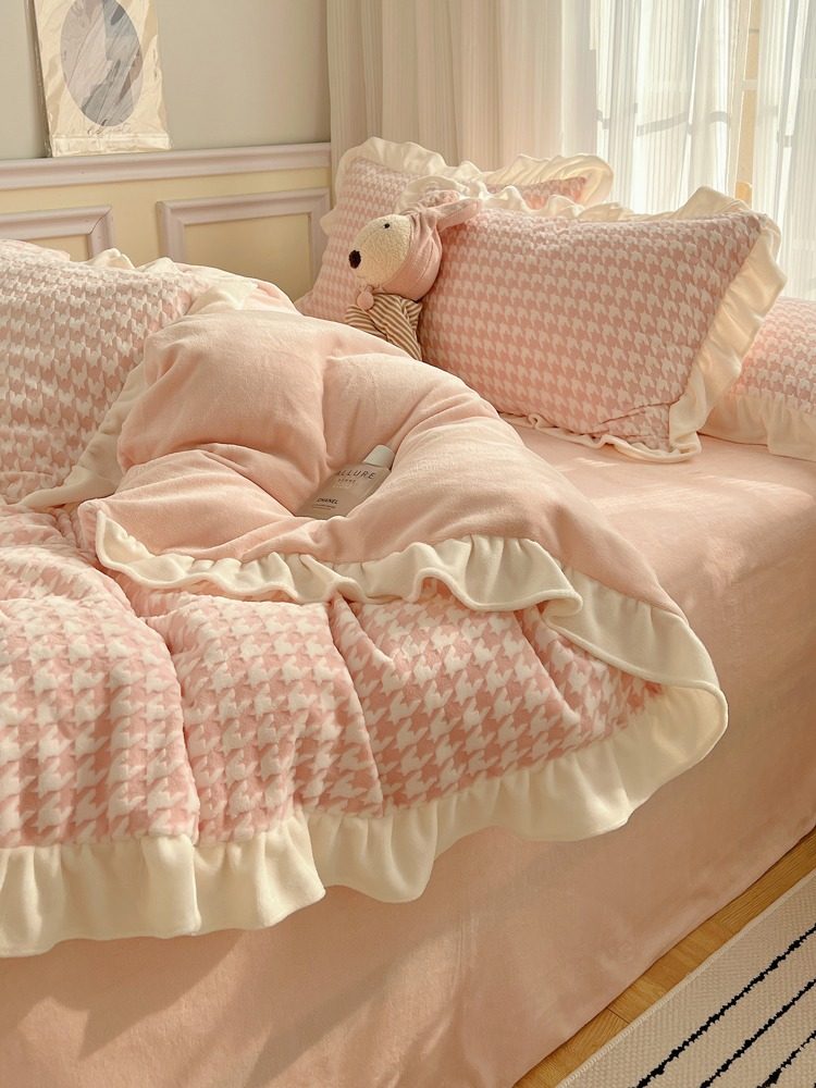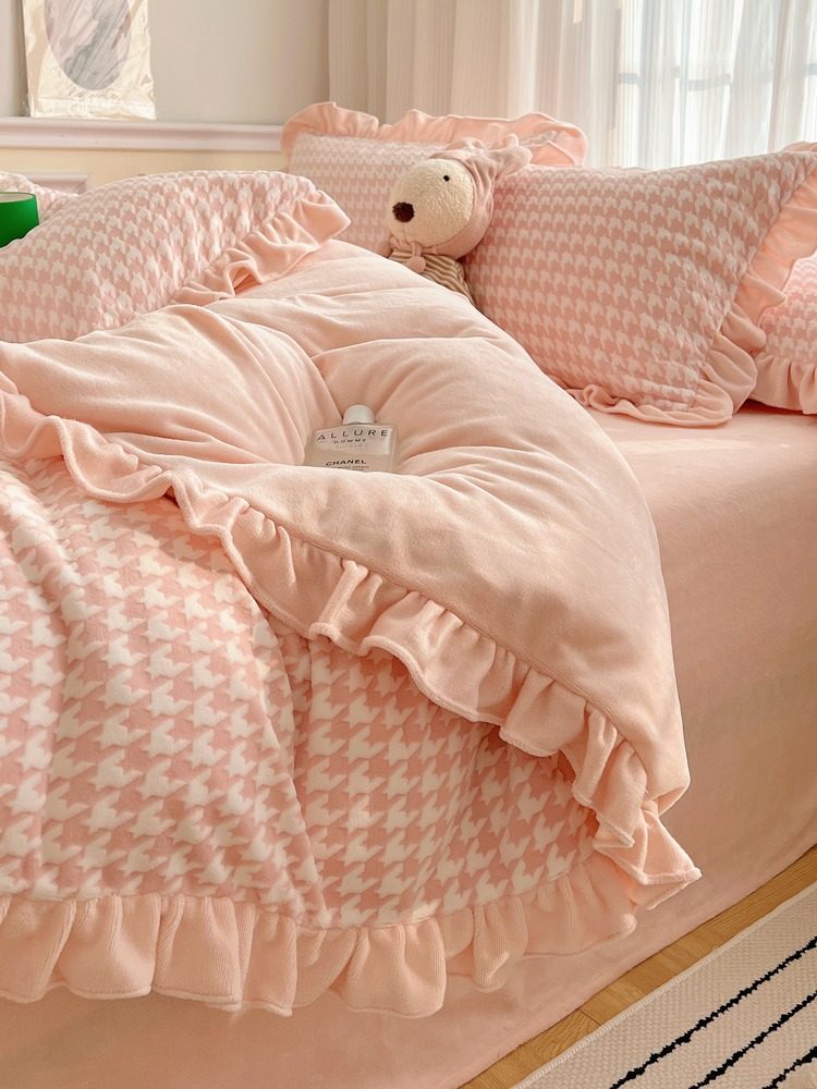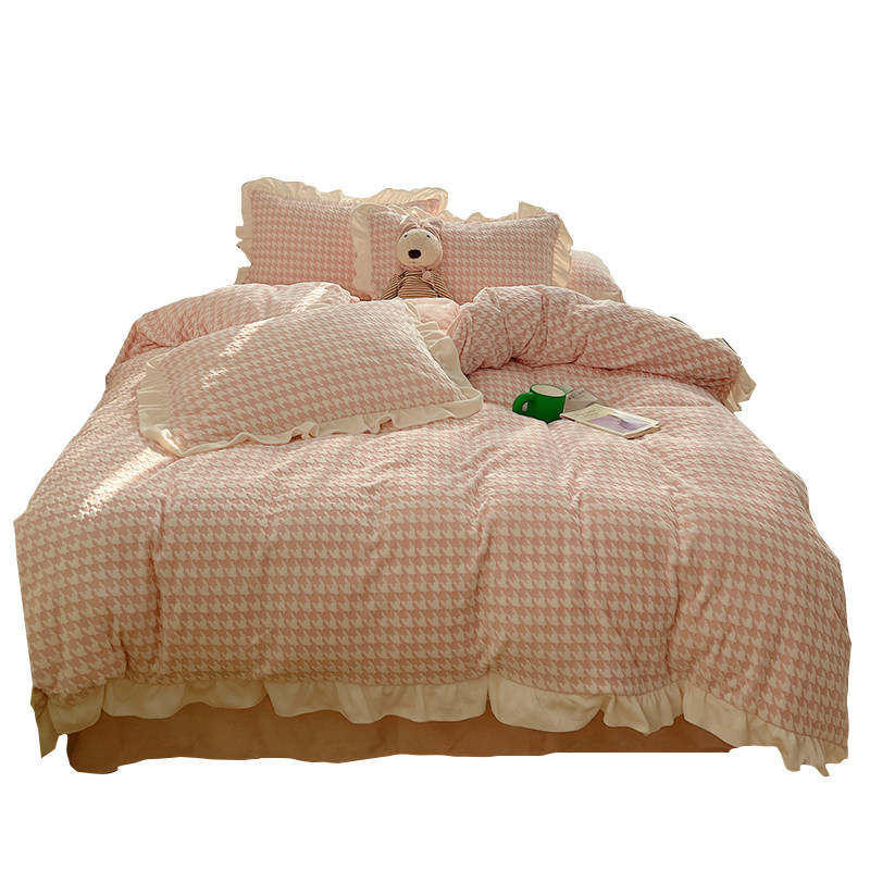 ins风冬季 保暖渐变色牛奶绒被套宝宝绒双人床单红色结婚庆四件套