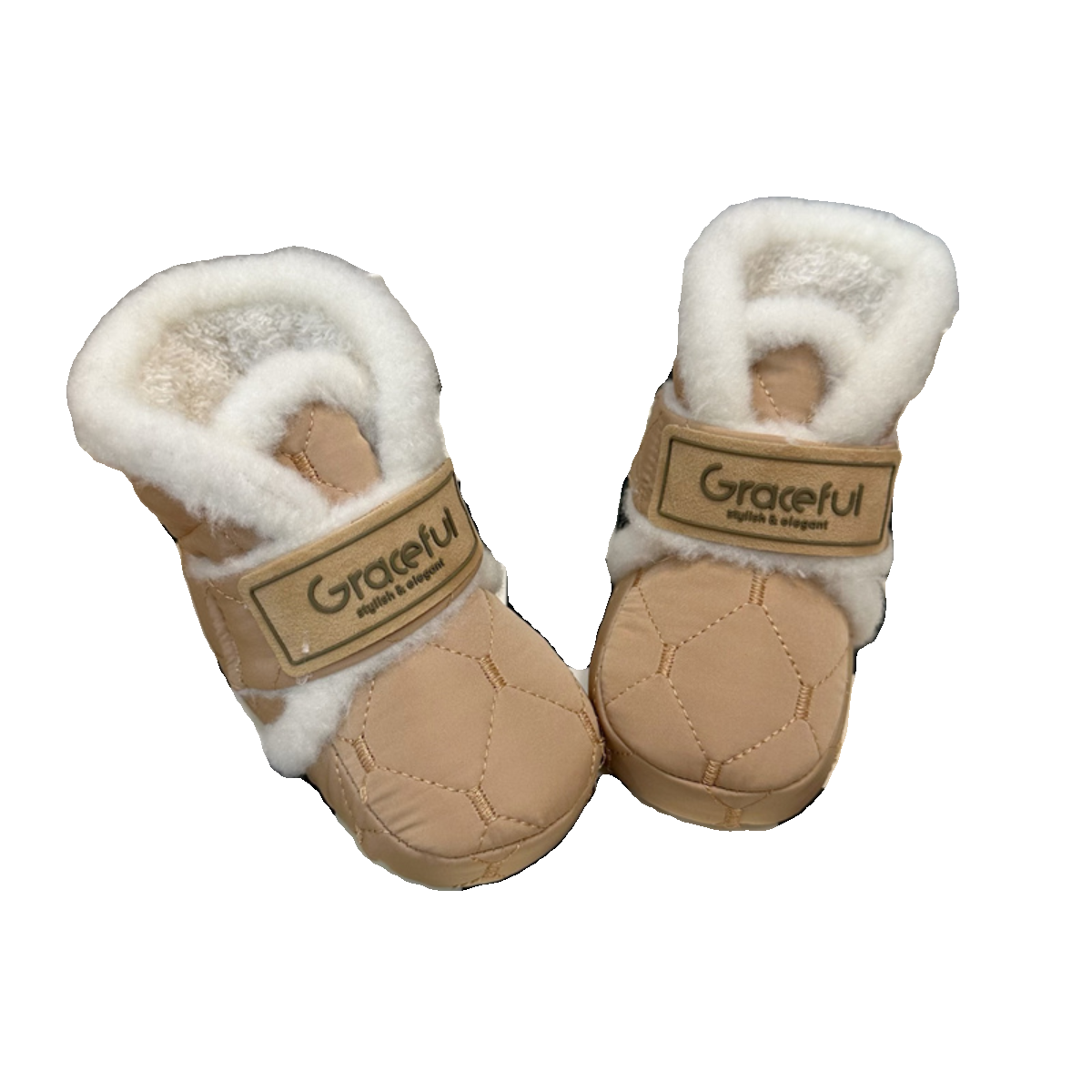 12个月男女宝宝冬加绒保暖毛绒熊爪步前鞋 婴儿袜鞋 1岁软底鞋
