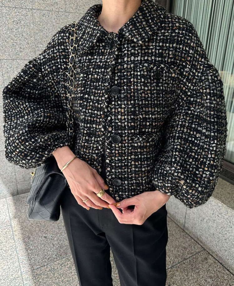 秋冬 小香风 粗花呢编织肌理 偏短身感 外套 羊毛混纺 松本