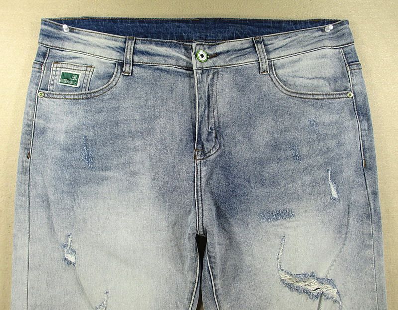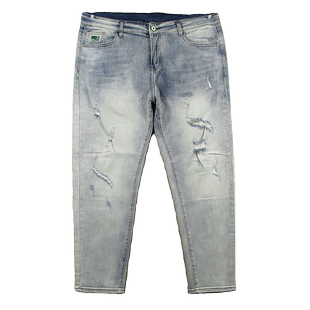 牛仔裤 男38码 破洞弹力修身 肥佬裤 I207 锥形小脚大码 KHCO 0910