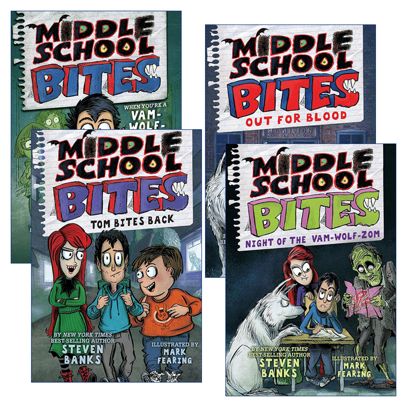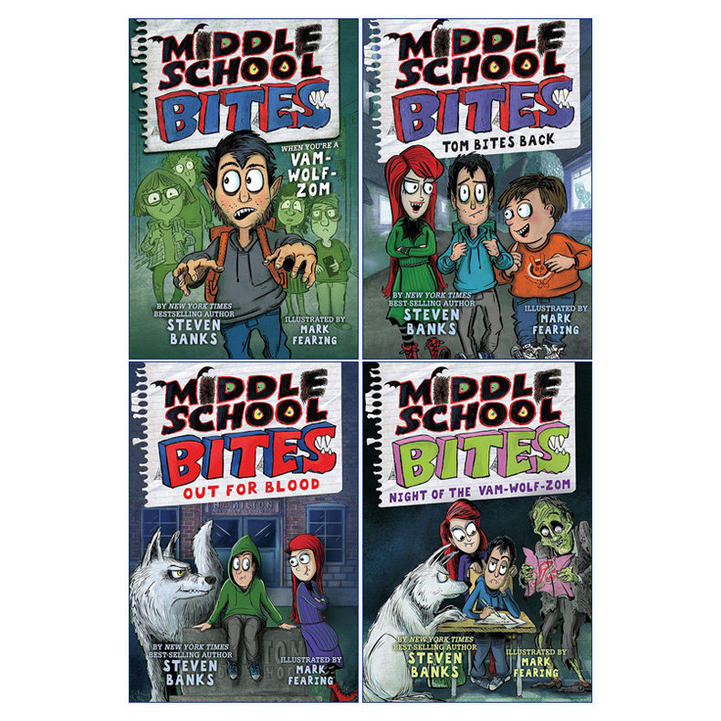 Steven 书籍 School 进口英语原版 英文版 Banks 儿童幽默校园小说 中学咬人系列4册 Bites Middle 英文原版