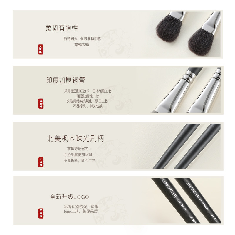 欧亿姿羊毛斜坡点彩刷腮红刷指腹遮瑕刷动物毛软毛修容刷子化妆刷