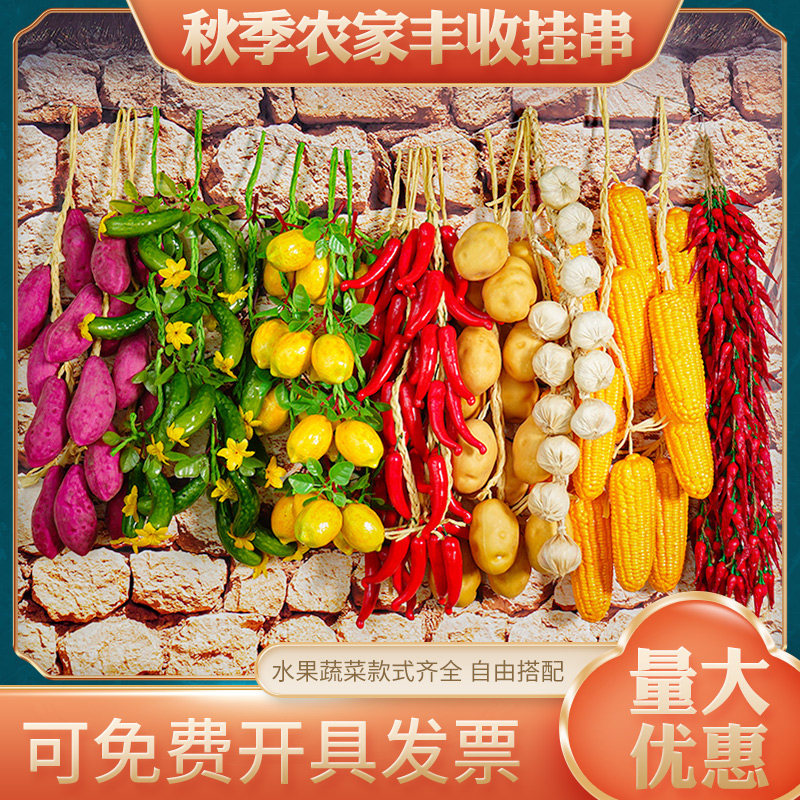 仿真水果摆件模型幼儿园农家乐装 饰品假玉米辣椒串大蒜塑料摆件