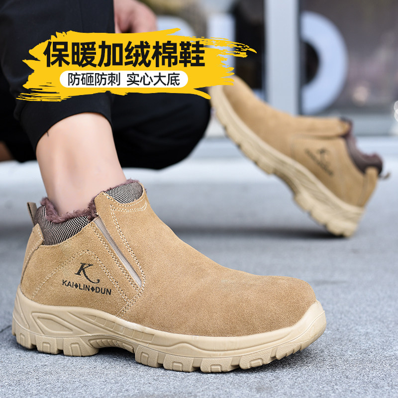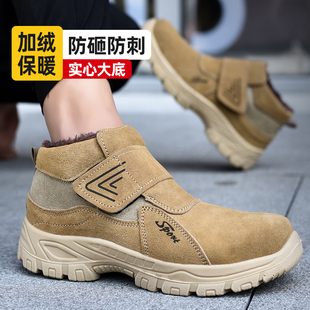 加绒加厚保暖真皮耐磨鞋 劳保鞋 男电焊工实心底钢包头防砸防刺冬季