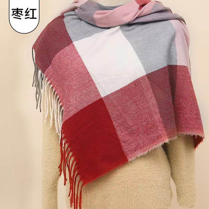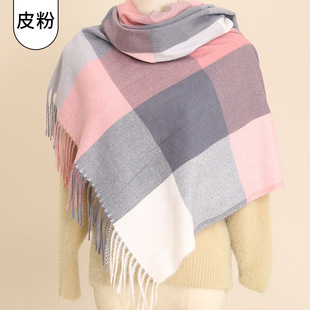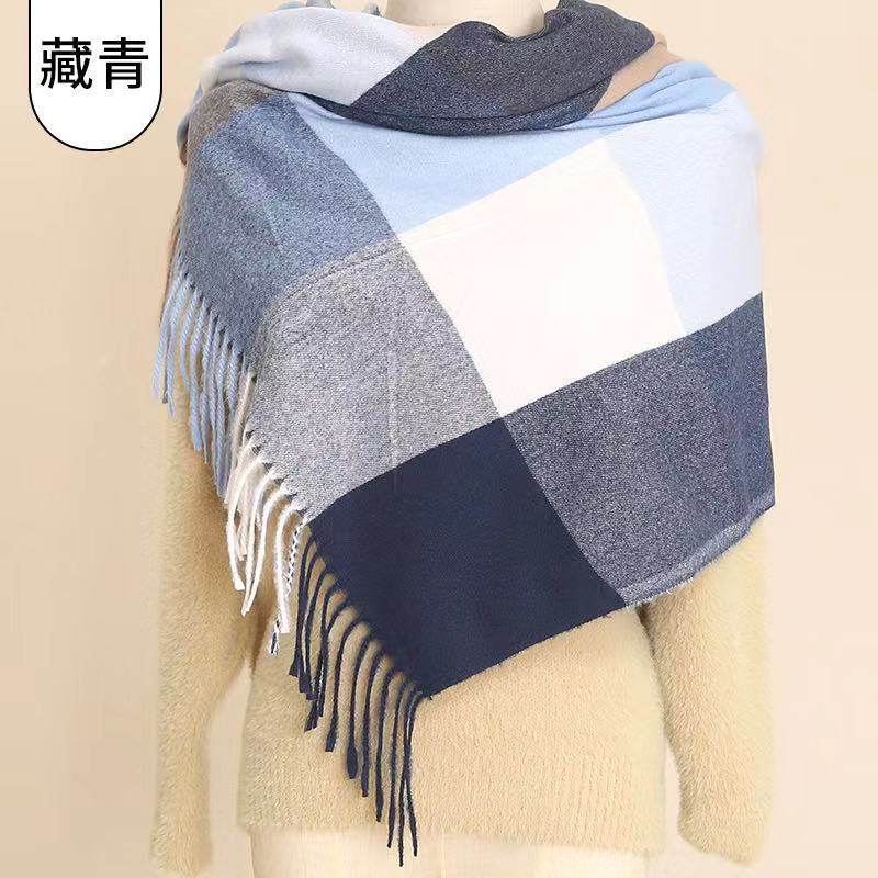 2023秋冬季 仿羊绒围巾 简约女士格子围巾披肩欧美厚保暖长款