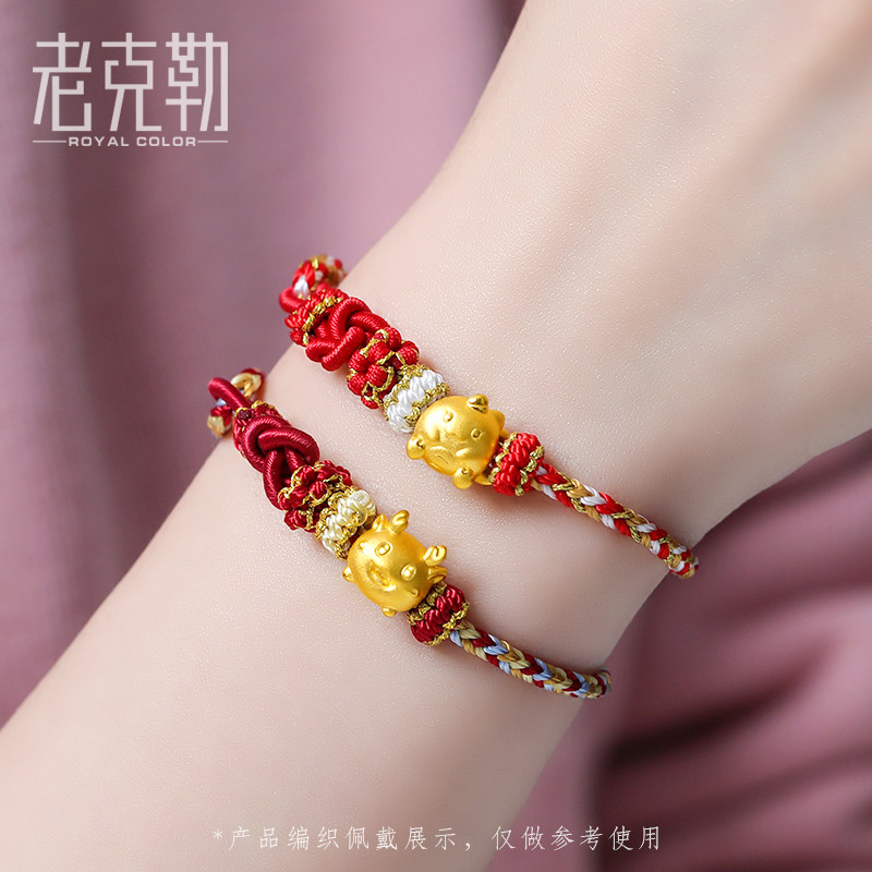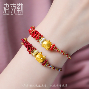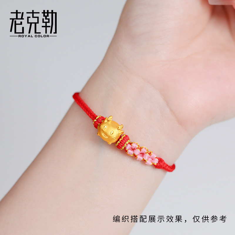 老克勒黄金硬金龙转运珠足金生肖手链手串红绳本命年龙年礼物儿童