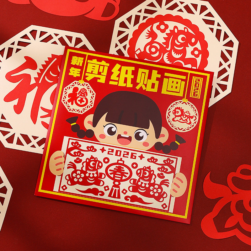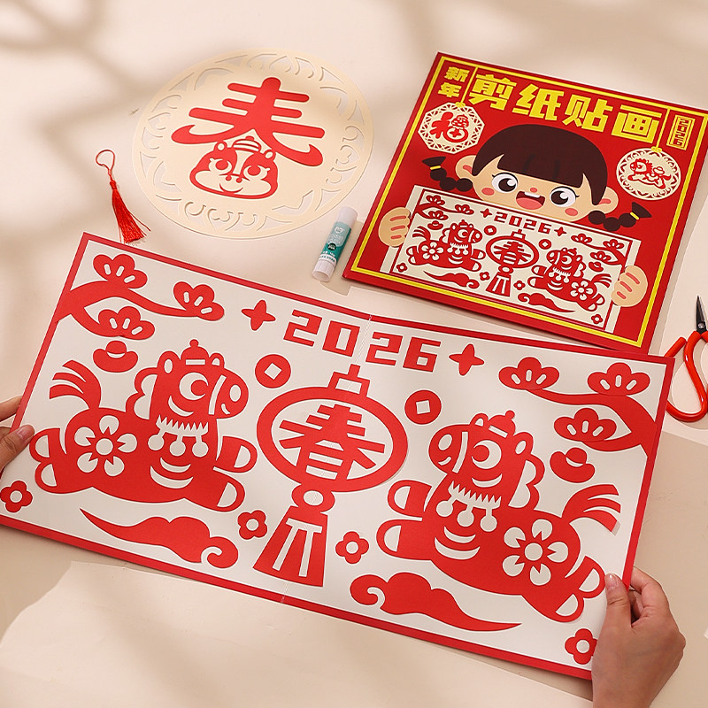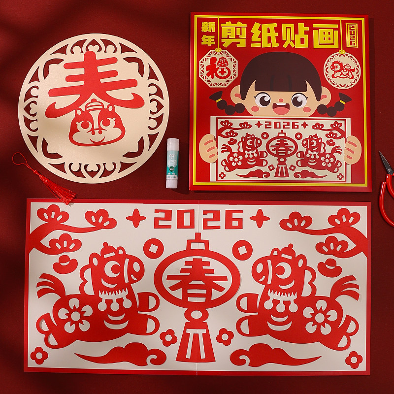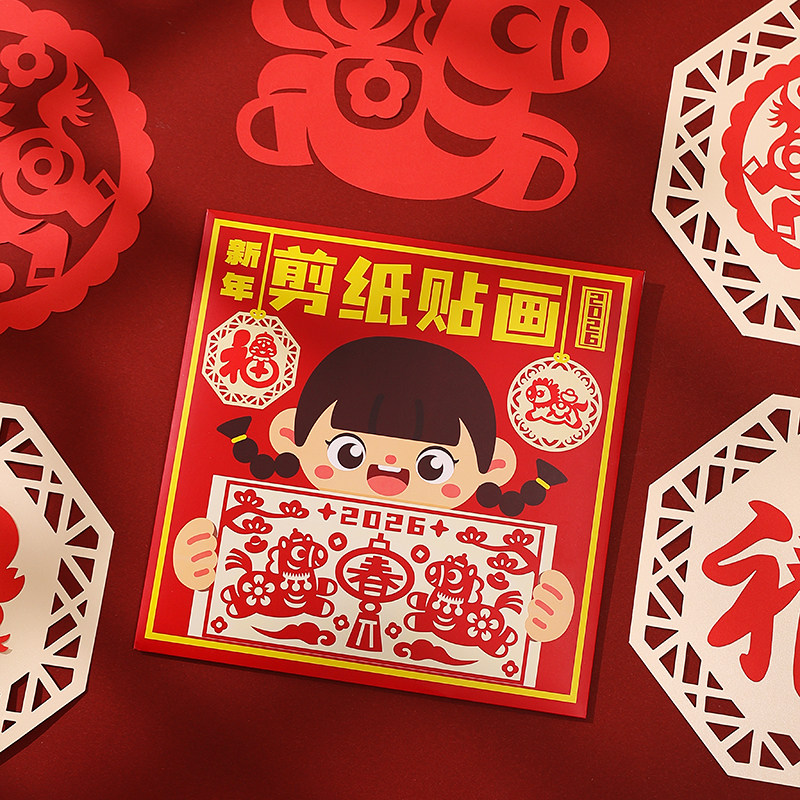 窗花纸剪纸儿童手工diy元 旦节新年2026年马年春节剪纸窗花专用纸张幼儿园小学生传统国风图案底稿半成品折纸