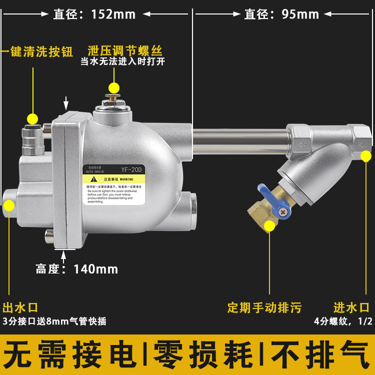 大排量空压机储气罐桶自动排水器YF 20D放水神器零气耗气泵疏水阀