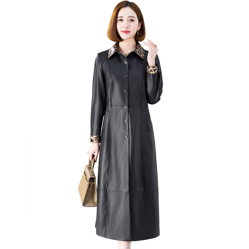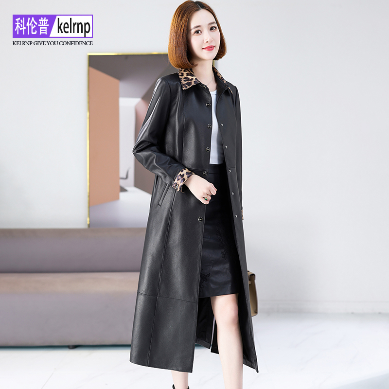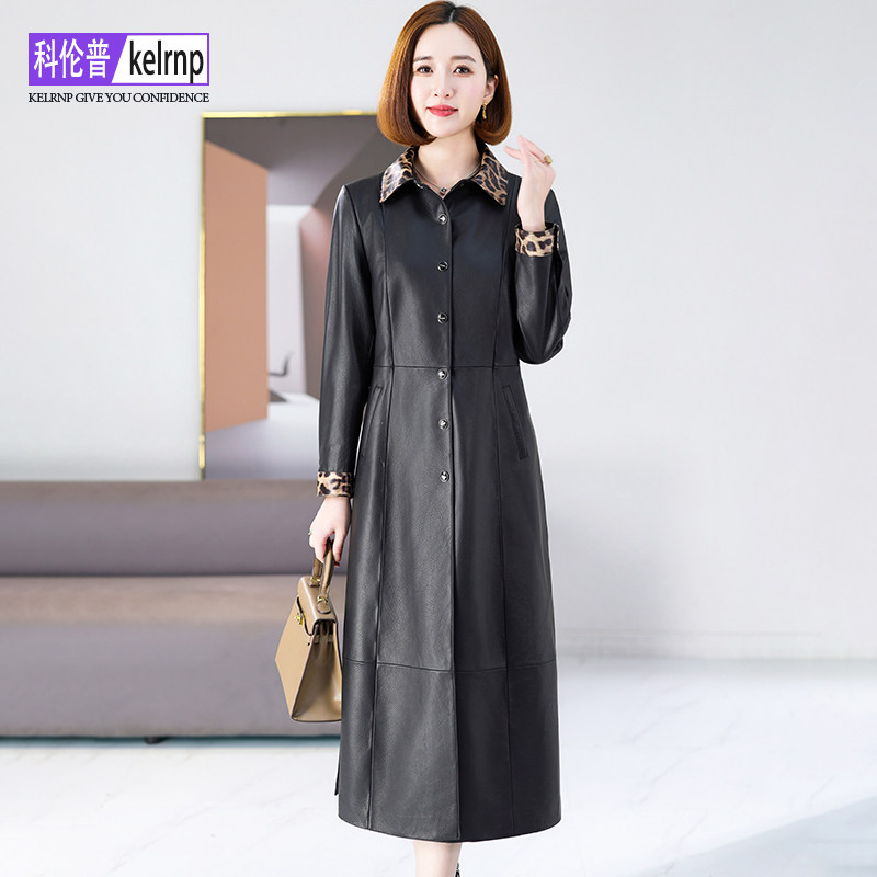 海宁真皮皮衣女2026冬新大中长款 豹纹头层绵羊皮外套大衣 收腰时尚