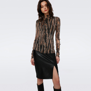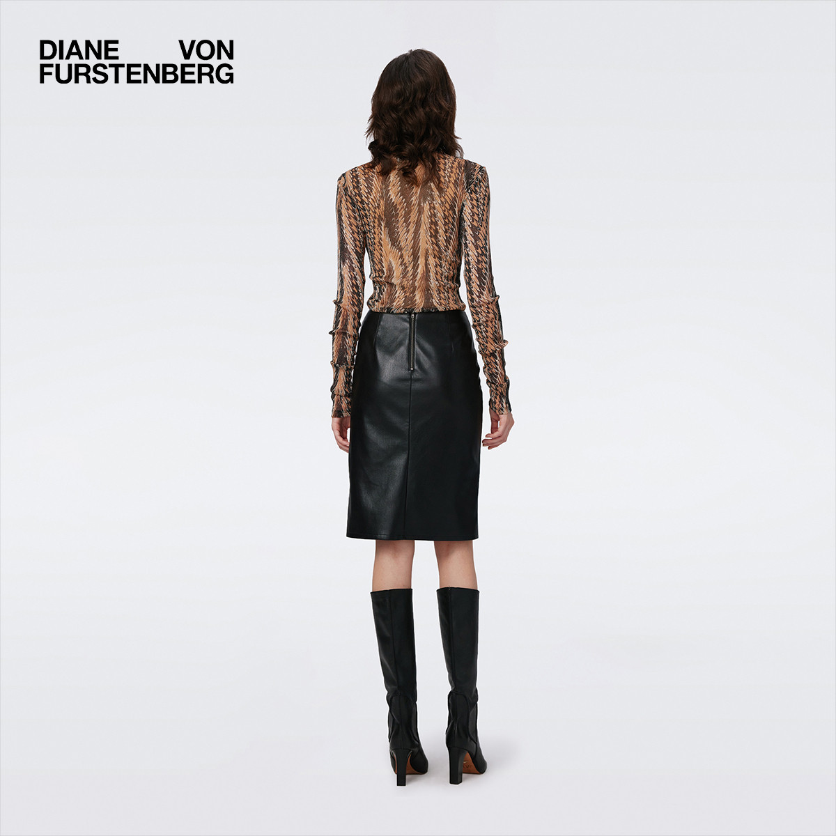 半裙MR67E00 曜石黑黑色仿皮裙中长款 DVF 时尚