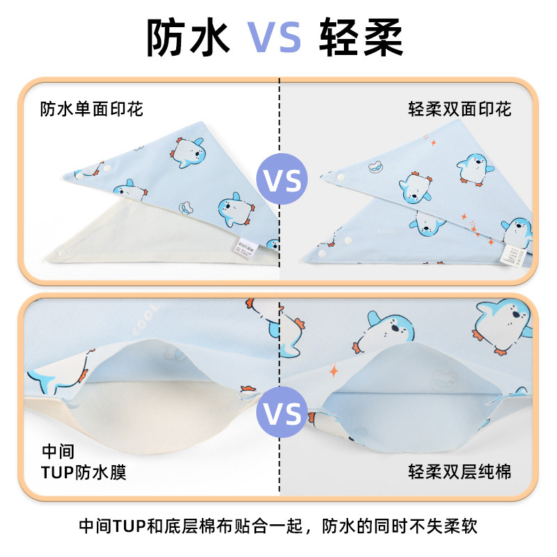 婴儿三角口水巾男宝宝围嘴a类纯棉三角巾新生小月龄防水围兜幼儿
