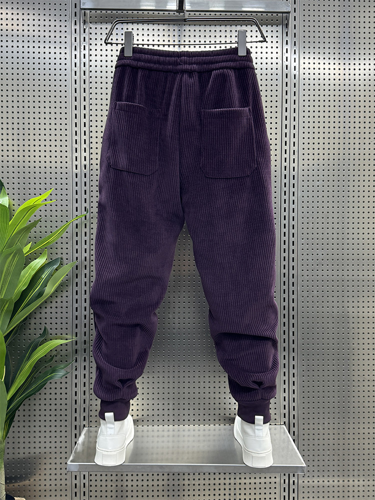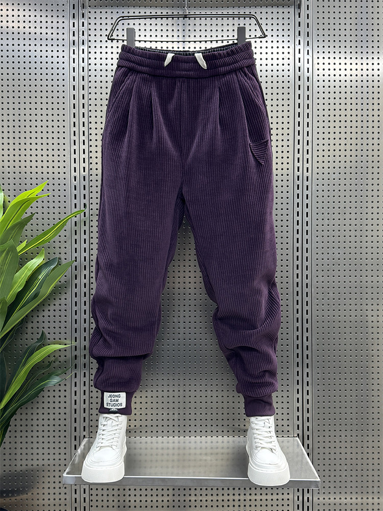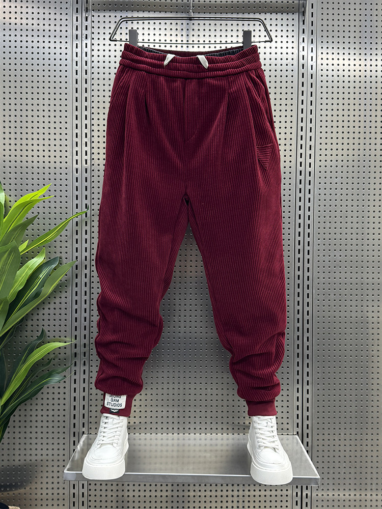 男士 刺绣休闲裤 新款 宽松束脚条绒卫裤 冬季 灯芯绒小脚长裤 网红时尚
