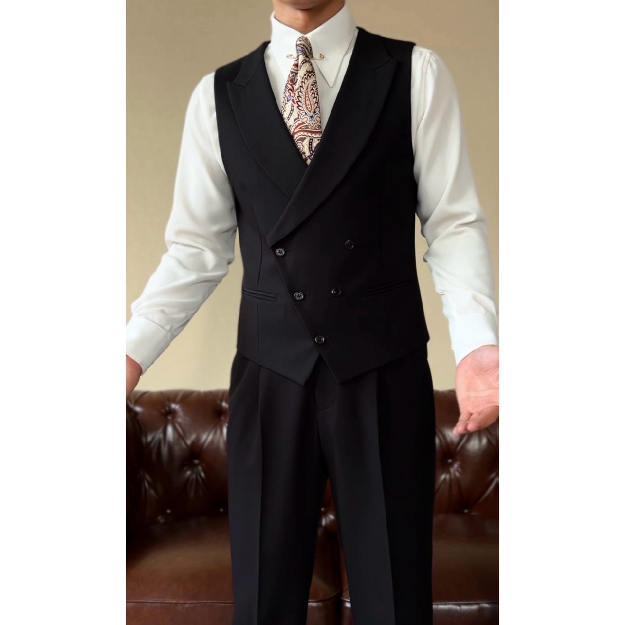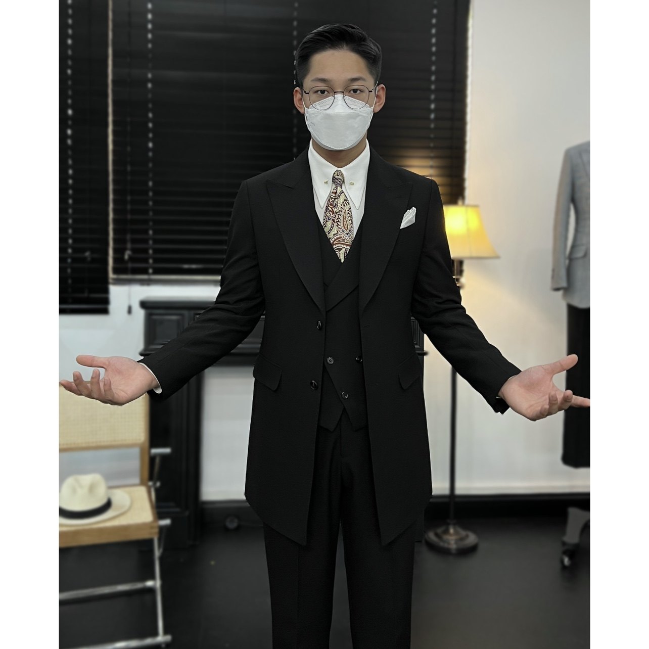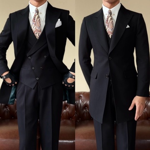 三件套西服套装 新款 婚礼宴会主持司仪戗驳领气质款 中长款 男士