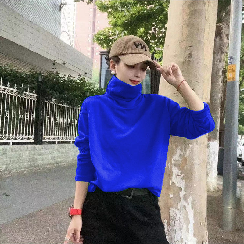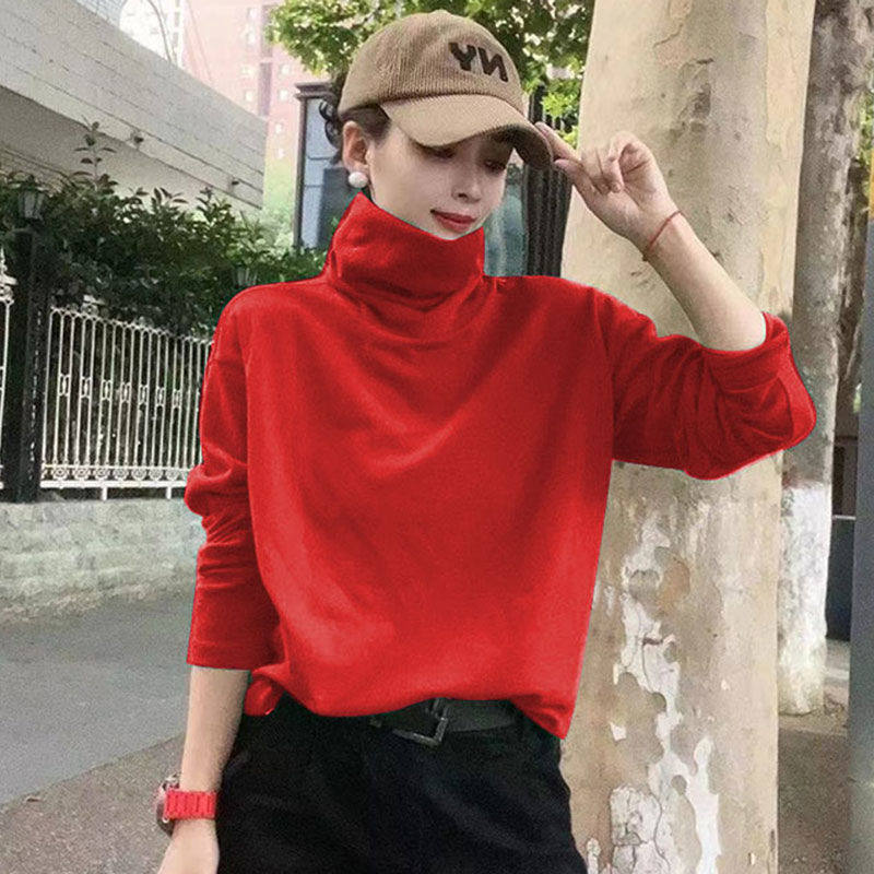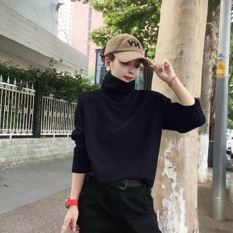 加厚欧货欧洲站加绒秋冬款 t恤上衣外穿打底 卫衣女堆堆领内搭长袖