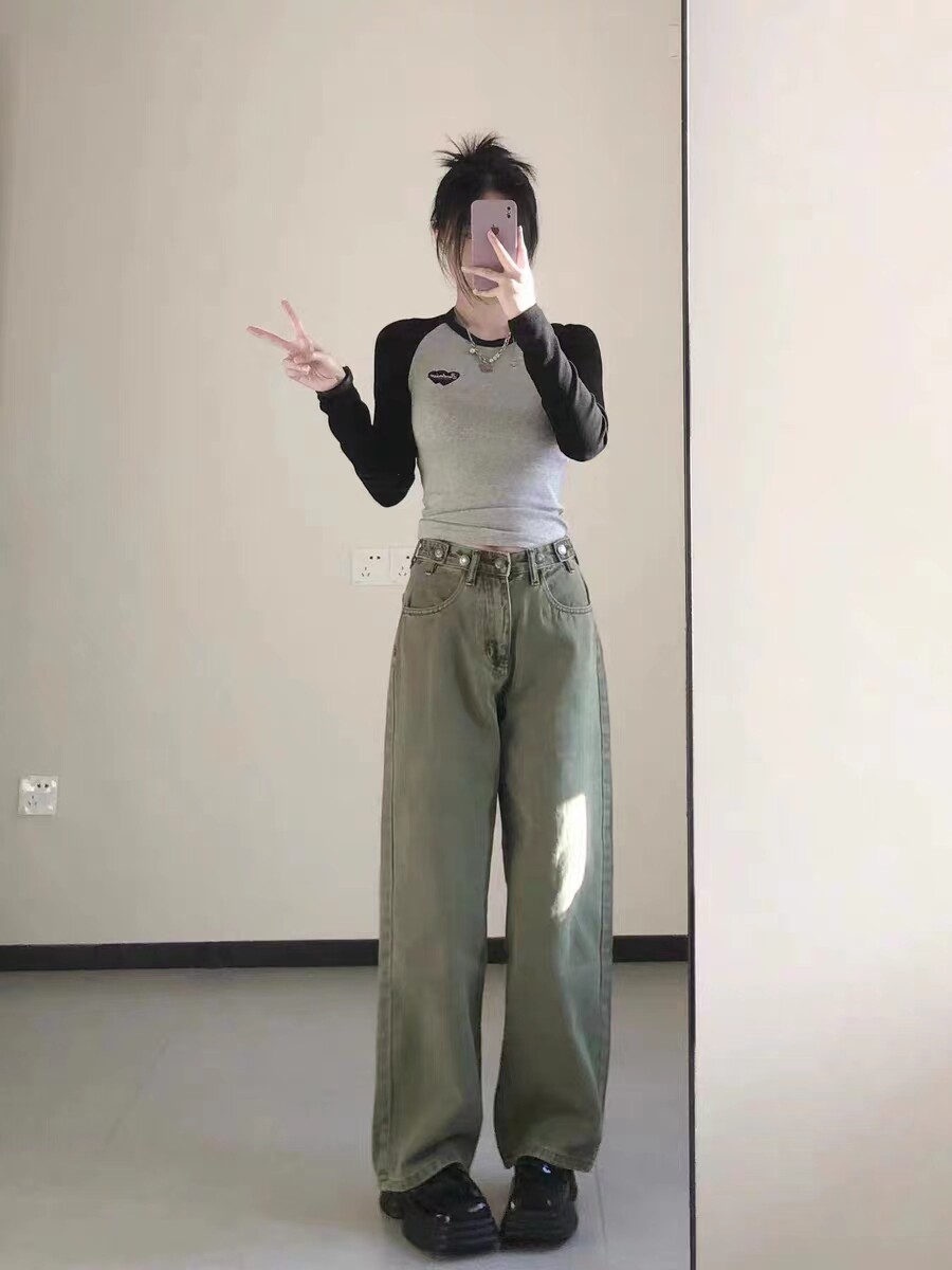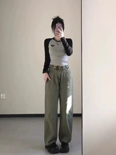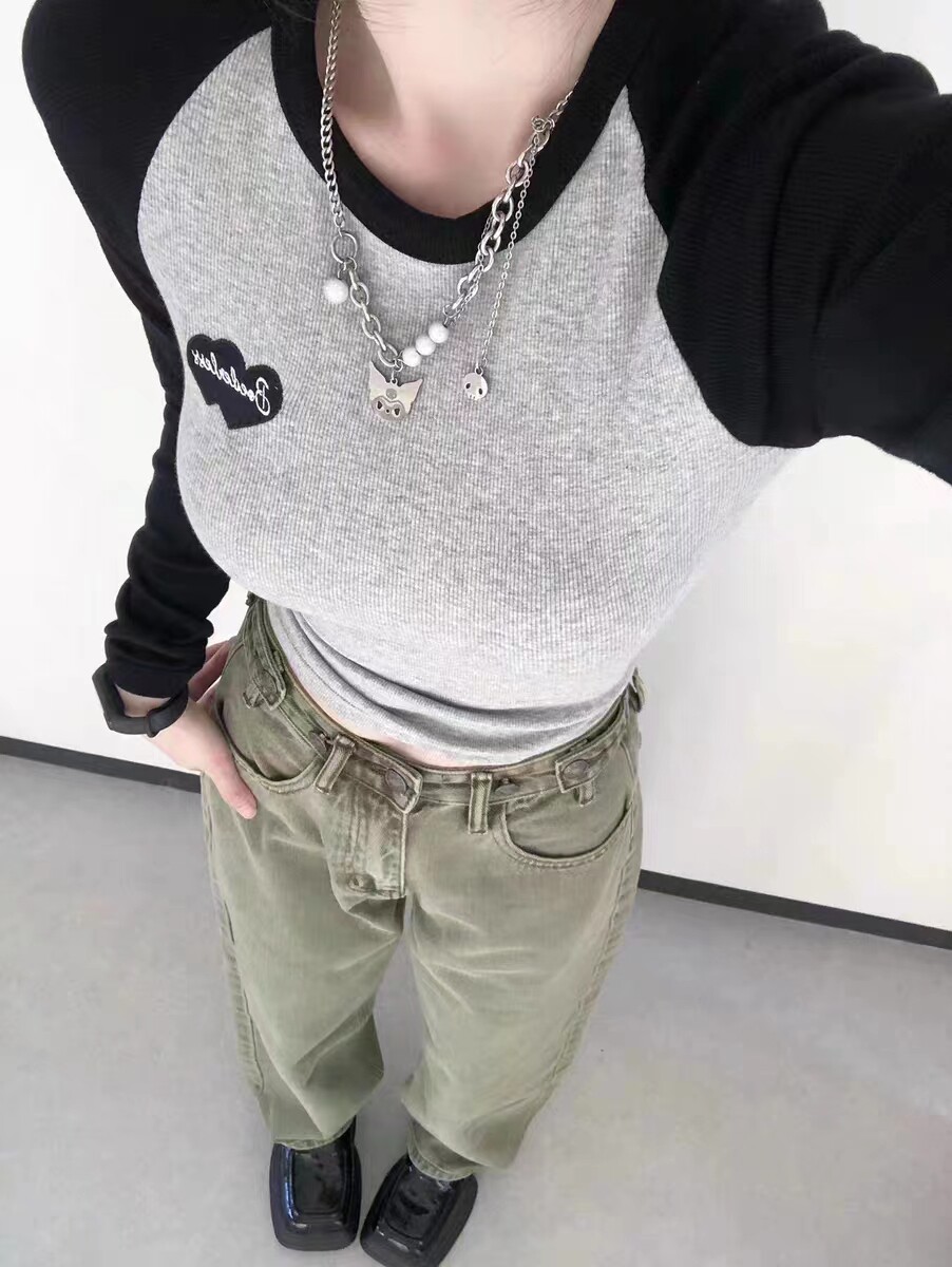 设计感正肩上衣女春秋新款 纯欲打底衫 大码 t恤修身 胖妹妹长袖 美式