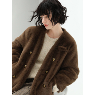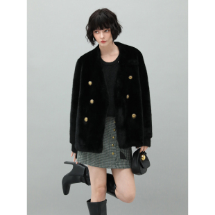 COCOBELLA丰盈毛感环保皮草外套双排扣保暖短大衣WL56 3件5折