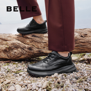 厚底增高真皮休闲商务健步鞋 百丽男鞋 冬季 运动鞋 A1354AM4 加绒棉鞋