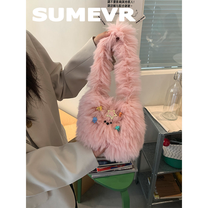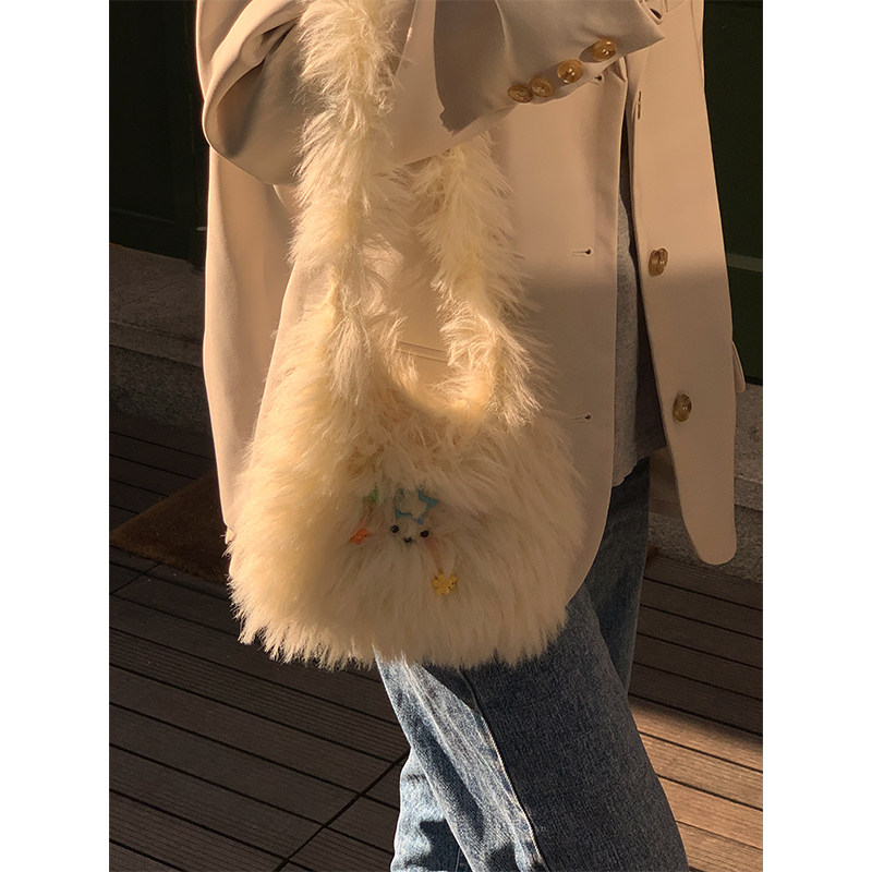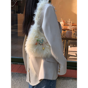 毛绒腋下包百搭单肩手提包小狗 潦草小狗 SummerEver 白鹿同款