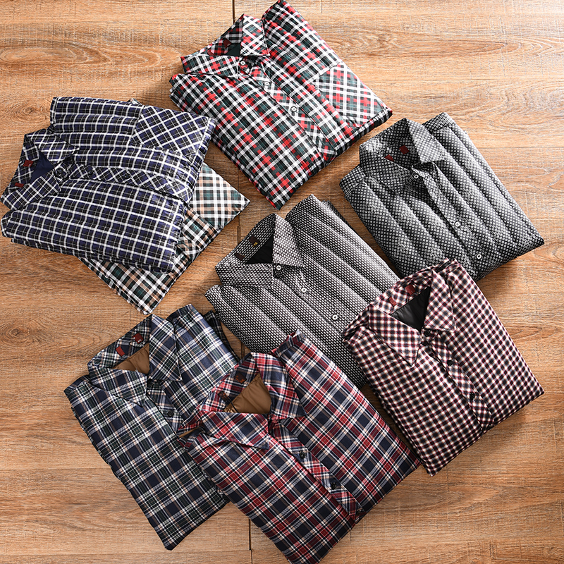 商务百搭加厚保暖格子羽绒衬衫 捡漏 男士 压胶锁绒冬季 白鸭绒衬衣
