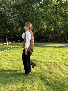 休闲裤 九分裤 百搭简约松紧腰灯芯绒棉深蓝色气球裤 DecemberRush
