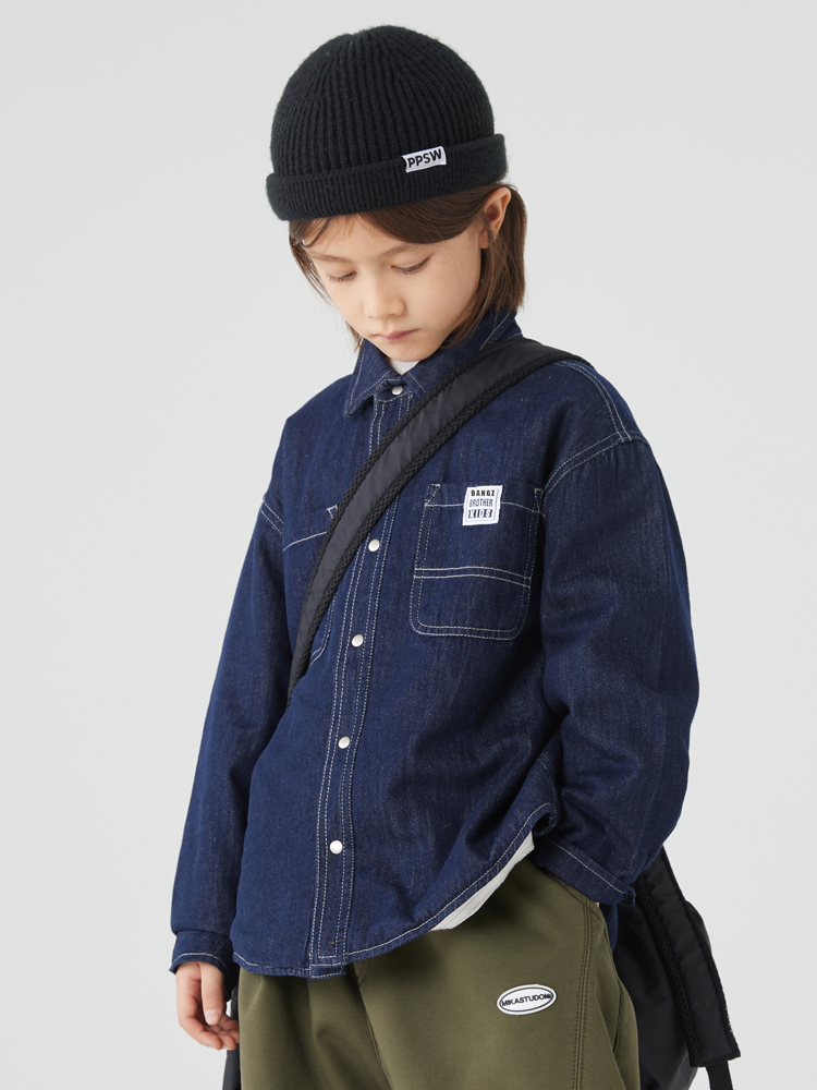 棉服外套男女童百搭上衣 秋冬加厚深蓝牛仔衬衫 不掉色 日系童装