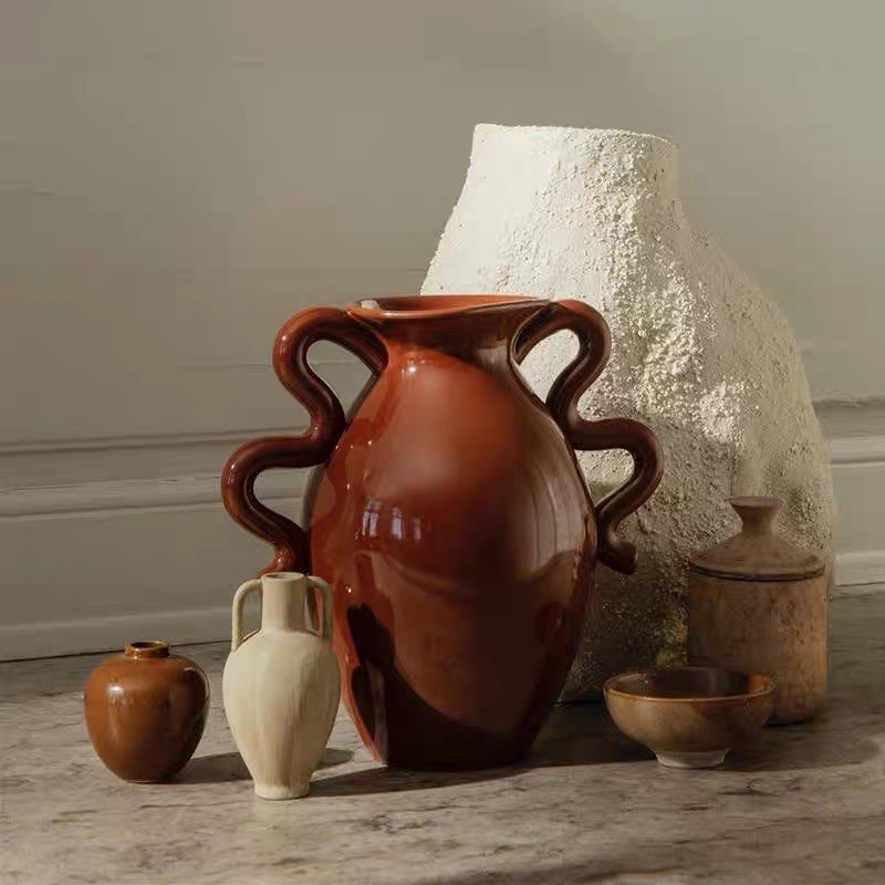 镧林复古台面陶瓷花瓶黑色客厅摆件粗陶罐餐桌插花器陶艺民宿长吉