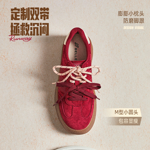 女薄底健身运动休闲板鞋 德训鞋 子 男生复古红色经典 马登极速赛车鞋