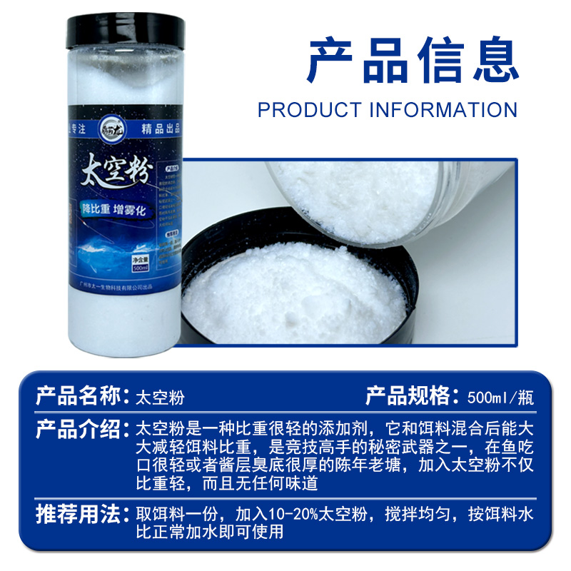 鼎钓龙太空粉状态粉减轻比重500ml轻飘飘滑口漂浮饵料散炮窝料