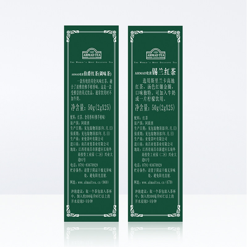 50包经典 锡兰袋泡红茶包2g 组合 TEA亚曼进口茶叶伯爵 英国AHMAD