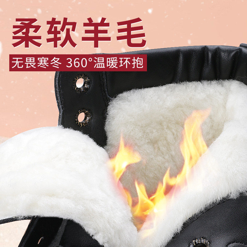 百丽复古时装 加绒雪地靴显瘦粗高跟短靴E5S1DDD5 超软羊皮靴新款