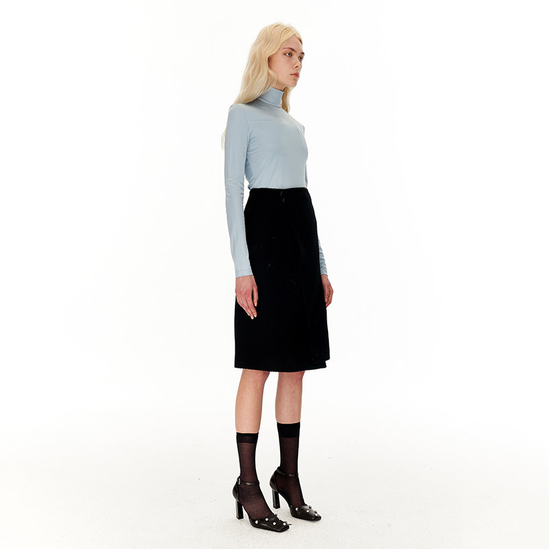 时髦叠穿短款 屁帘女秋冬季 针织半身裙 胖mm立体钩编绑带一片式 大码