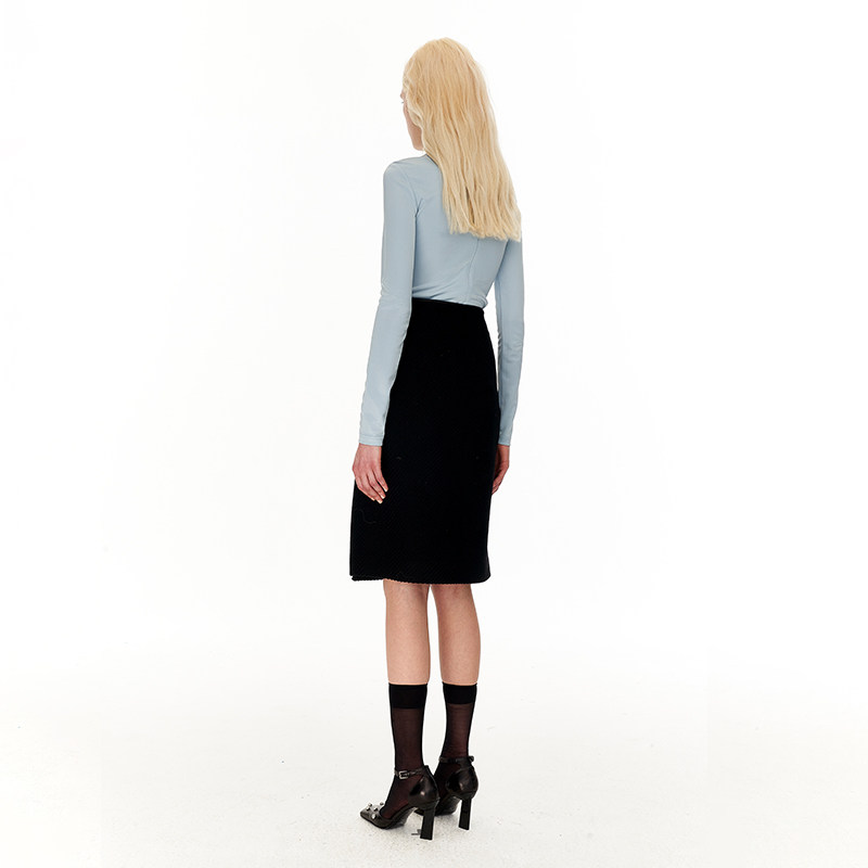 半身裙女胖妹妹高腰mm显瘦后开叉直筒长裙 黑色毛呢款 巨好看 大码