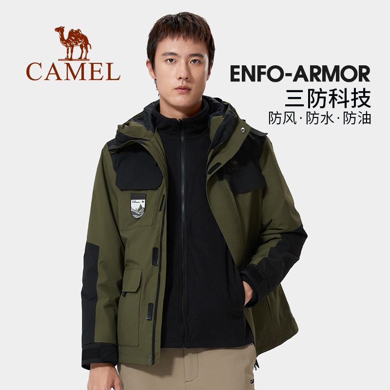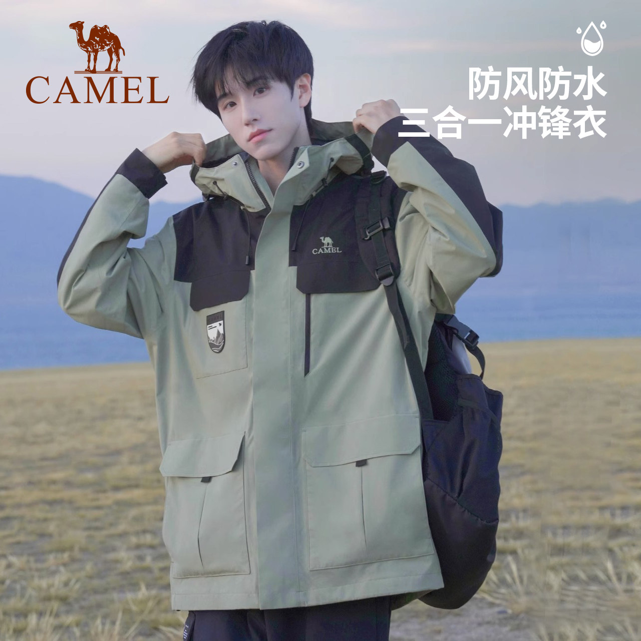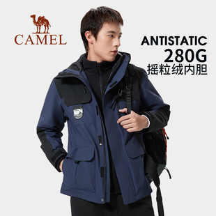 骆驼粉色冲锋衣女款 小个子秋冬2025户外三合一保暖羽绒内胆外套男