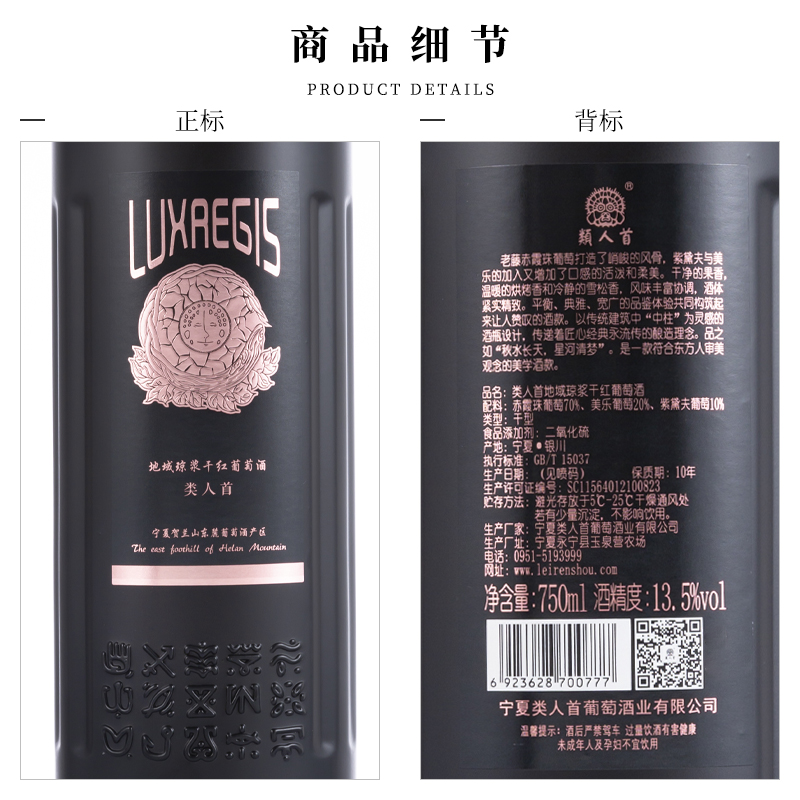 类人首地域琼浆干红葡萄酒 贺兰山东麓红酒 整箱6支装 直营