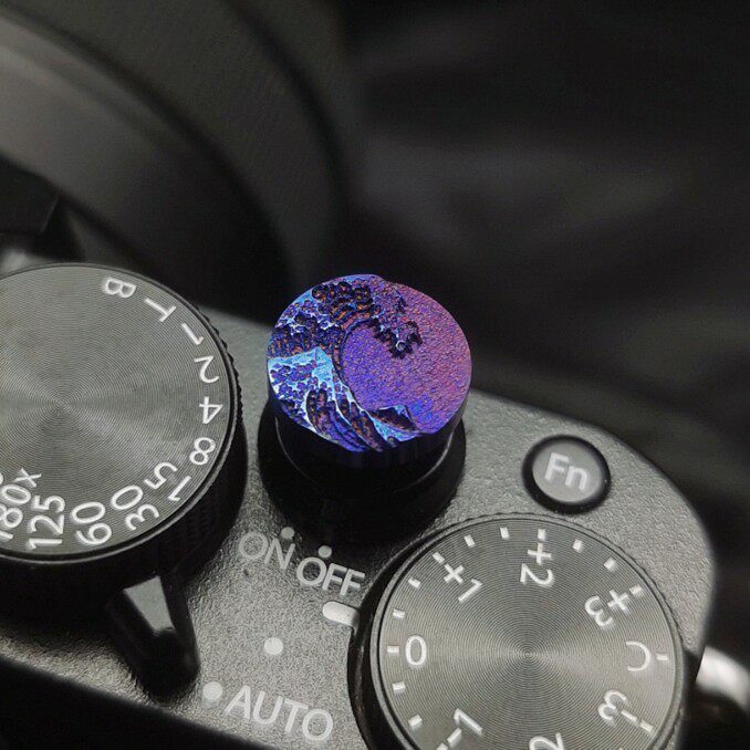 相机快门按钮适用富士尼康zf徕卡索尼铜钛金属浮雕浮世绘海浪键帽
