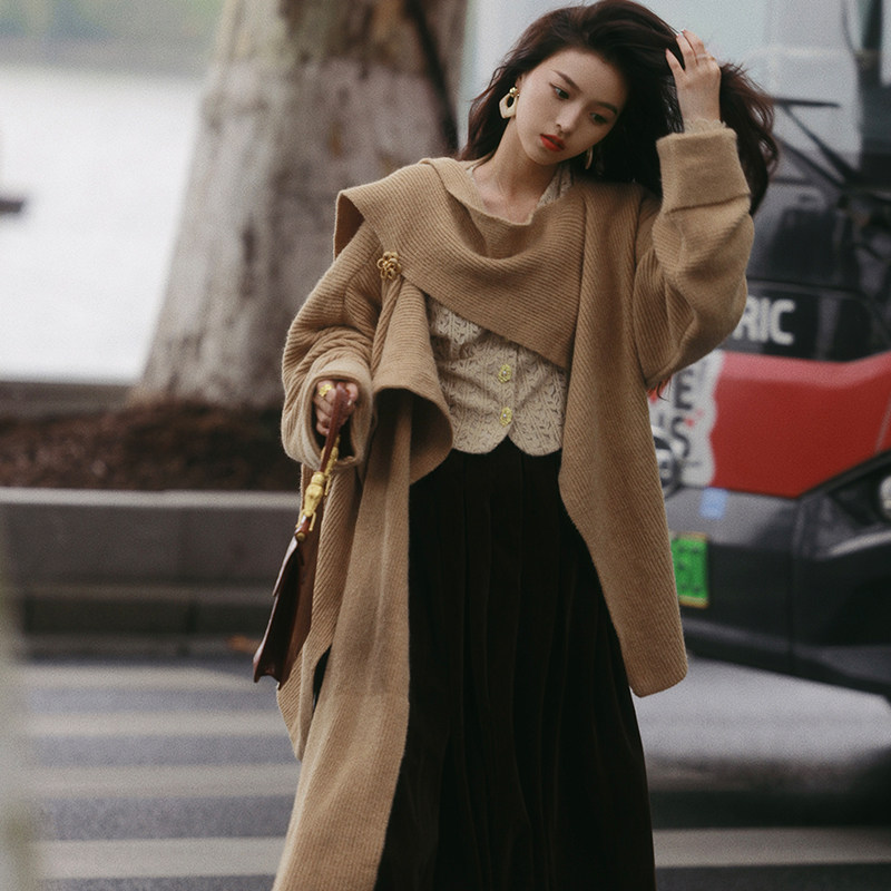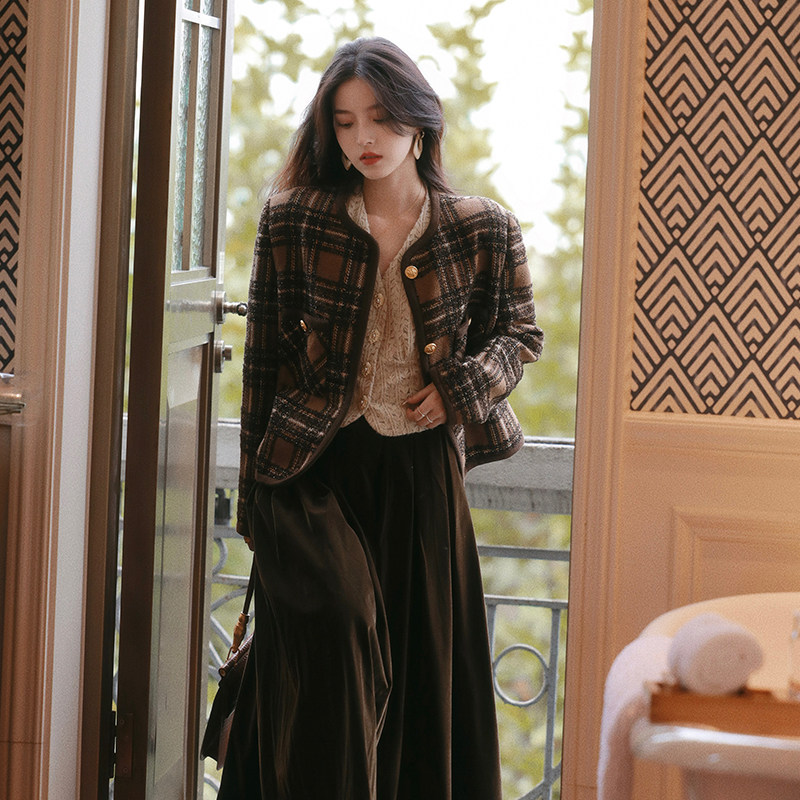显瘦百搭蓬蓬裙长款 A字丝绒半身裙 伞裙 复古高腰裙百褶 AZure法式