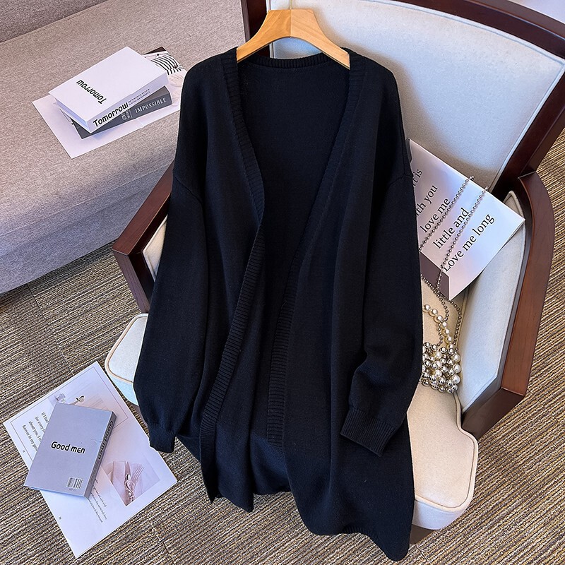 毛衣外套 女春秋300胖mm200斤宽松显瘦加肥加大中长款 大码 针织开衫