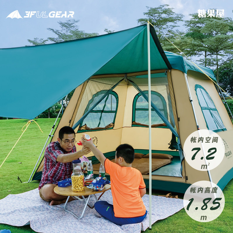 糖果屋户外帐篷自动速开防雨便携式 备加厚野外小屋 露营装