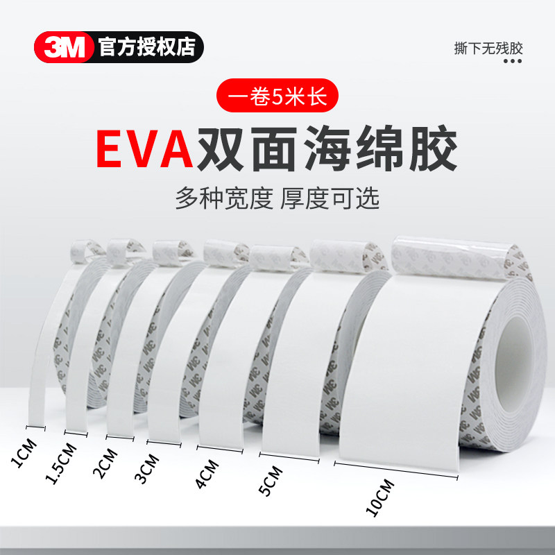 3m强力泡棉EVA双面胶海绵无痕高粘度固定墙面相框两面胶泡沫胶带