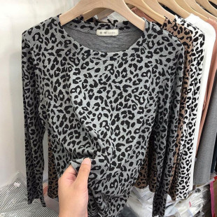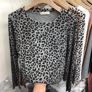 百搭打底衫 2026秋冬新款 上衣时尚 豹纹印花T恤女欧货洋气修身 长袖