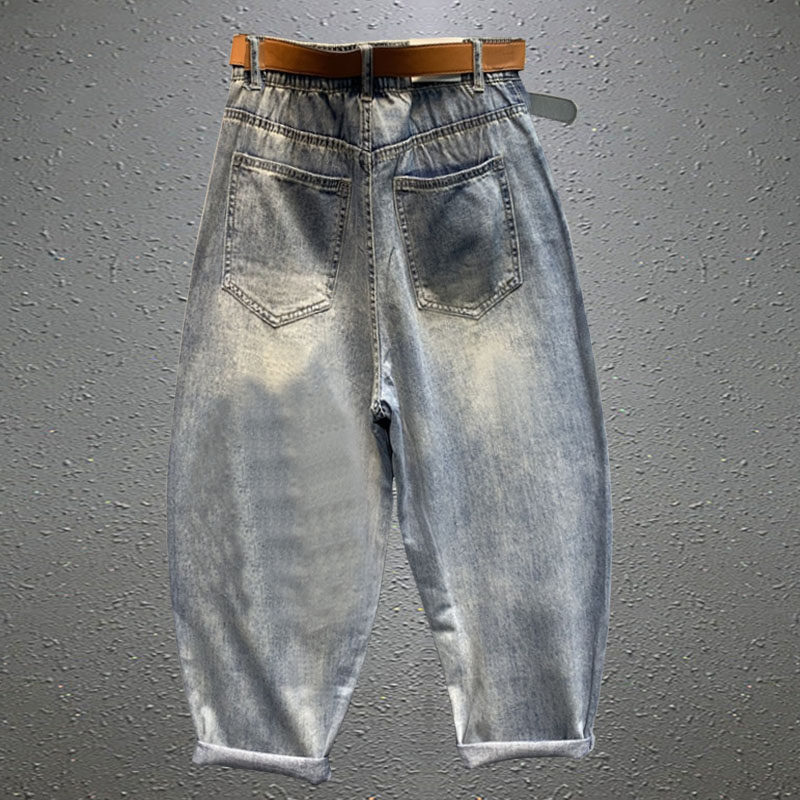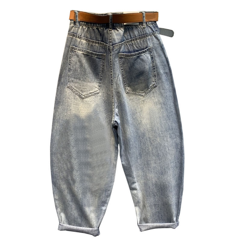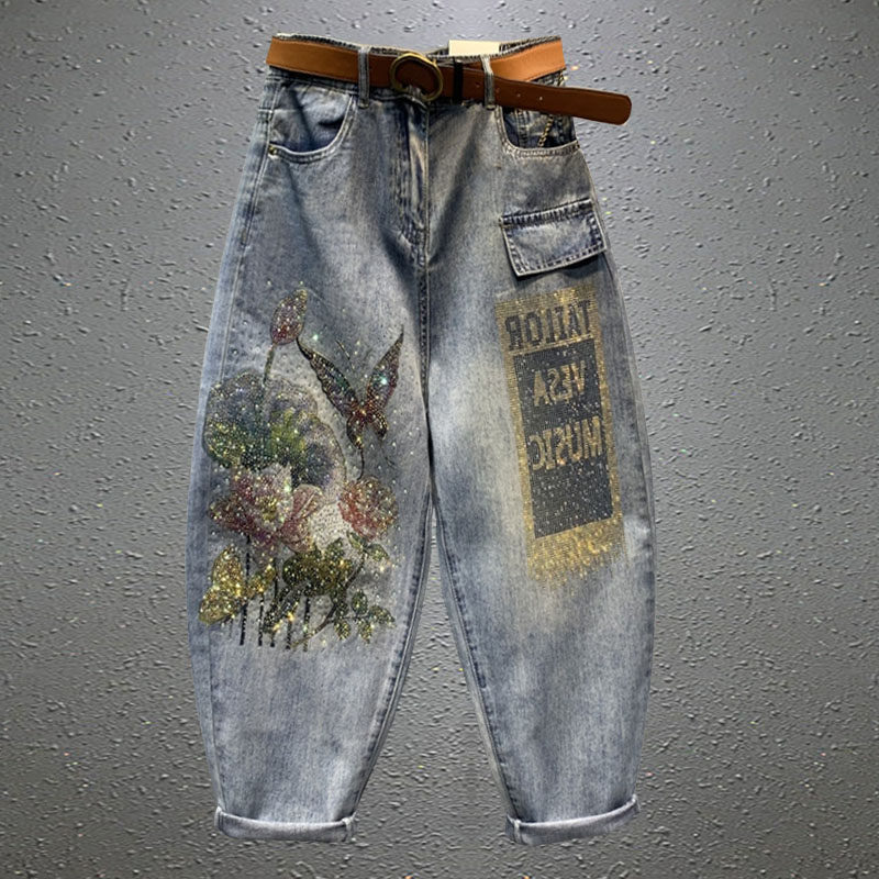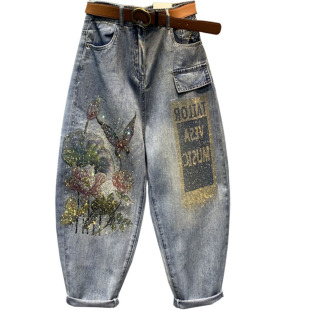萝小脚哈伦裤 破洞印花烫钻牛仔裤 宽松休闲九分老爹裤 新款 女春夏装