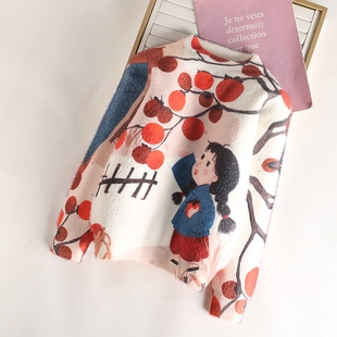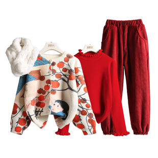 家居服套装 长裤 保暖爱心提花喜庆红套头长袖 畹町半边绒睡衣女冬季
