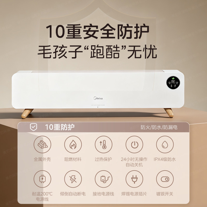 美 石墨烯踢脚线取暖器家用电暖气节能浴室办公室烤火炉暖风机
