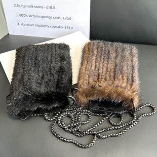 秋冬韩版 迷你手机包 百搭水貂毛简约皮草包包女士背包斜挎包女时尚