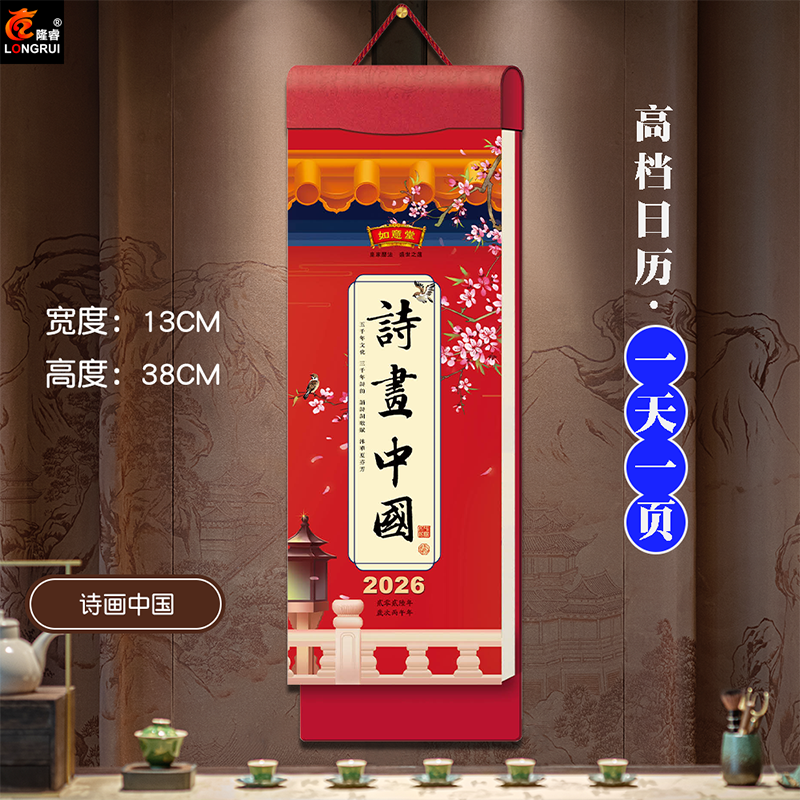 挂历2026年新款 公司广告定做送礼高档创意月份牌福字吊牌月历 日历定制家用挂墙马年手撕大号大六开中国风挂式